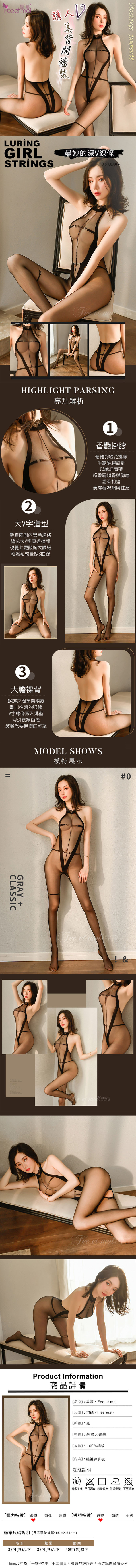 優雅緹花掛脖大V字線條美背開襠絲襪連身衣
