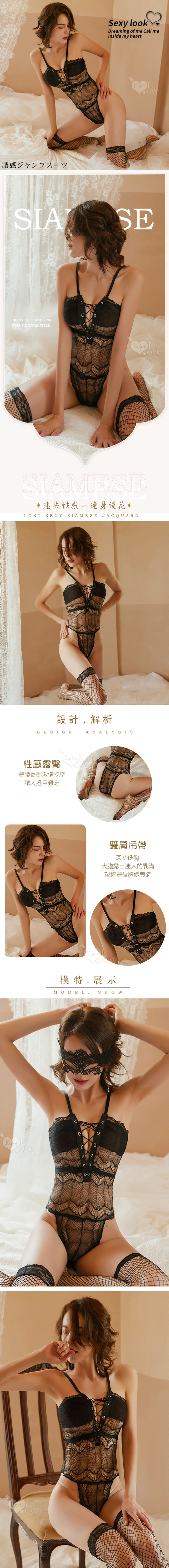 極性貓裝綁帶式V字溝線網紗誘惑連身衣兩件組 含網襪