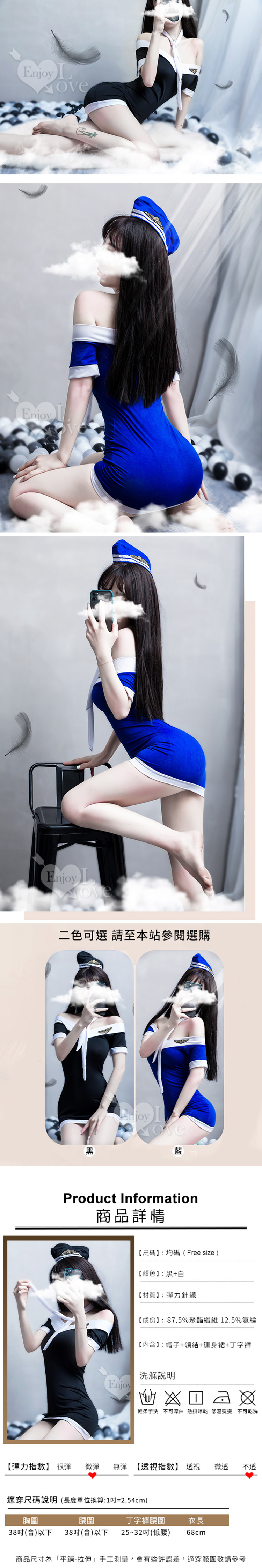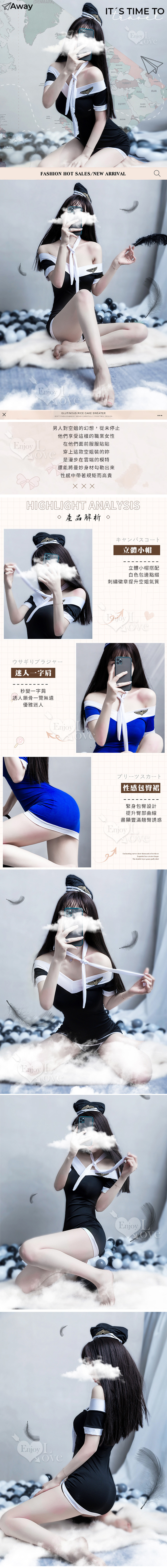 空姐角色扮演一字領撞色拼接連身裙四件式套裝