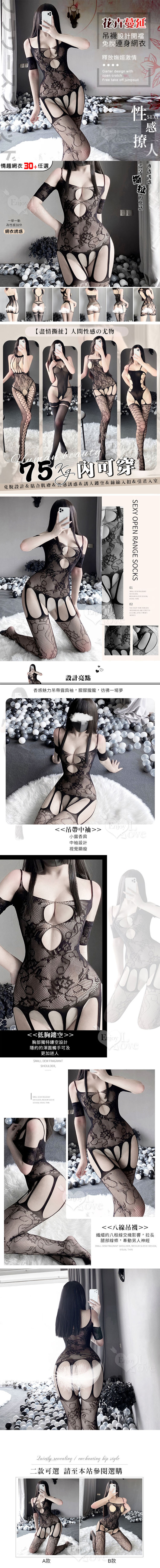 花卉蔓延吊襪設計開襠免脫連身網衣 (A款)