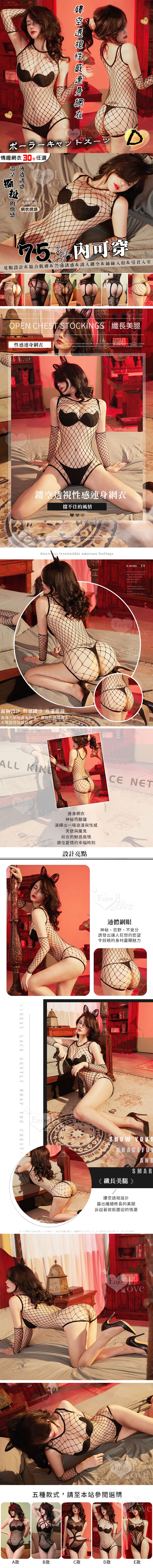 短版造型鏤空透視性感連身網衣 (D款)