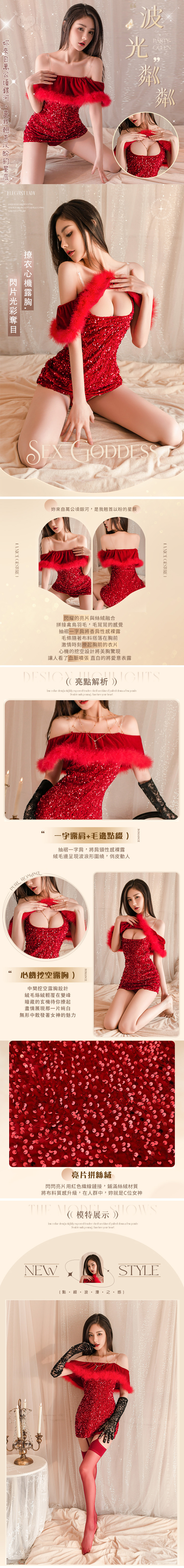 閃耀奪目 一字領毛絨邊條挖空閃亮三件組辣妹連身裙