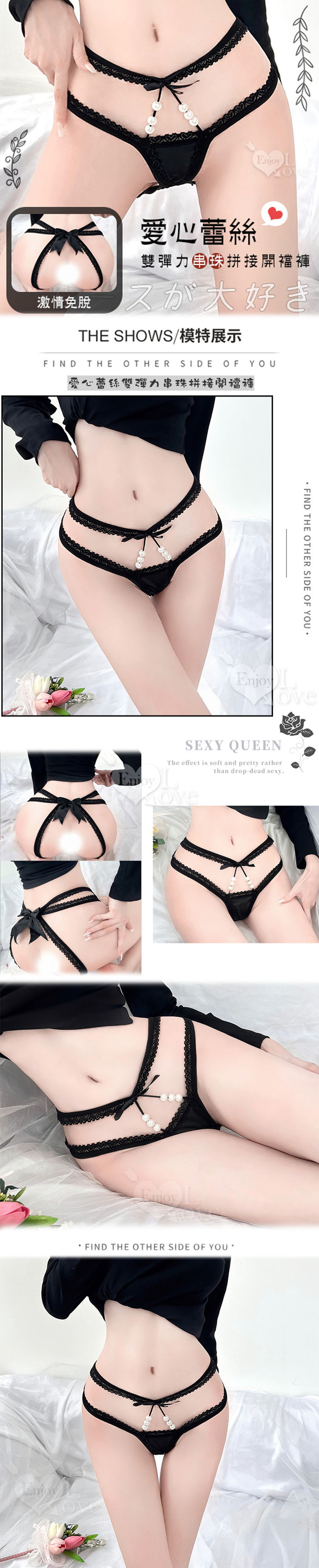 愛心蕾絲雙帶串珠開襠丁字褲