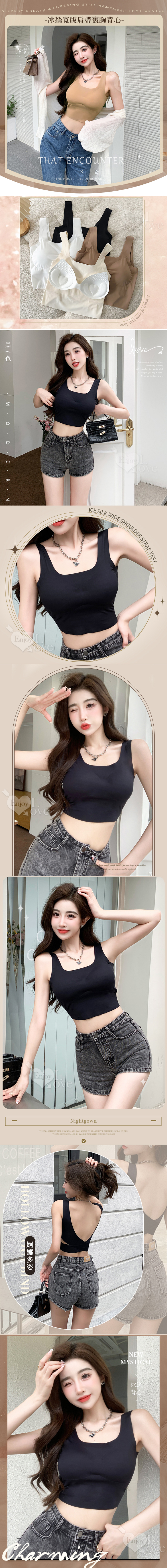 冰絲柔滑寬版肩帶修身裹胸背心(黑色/白色/卡其)