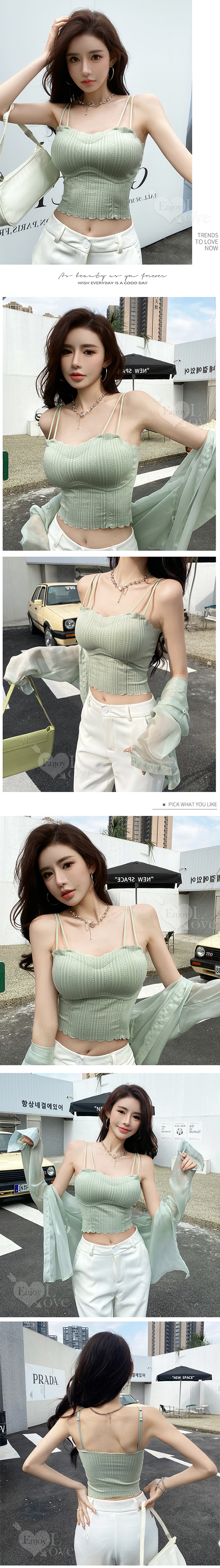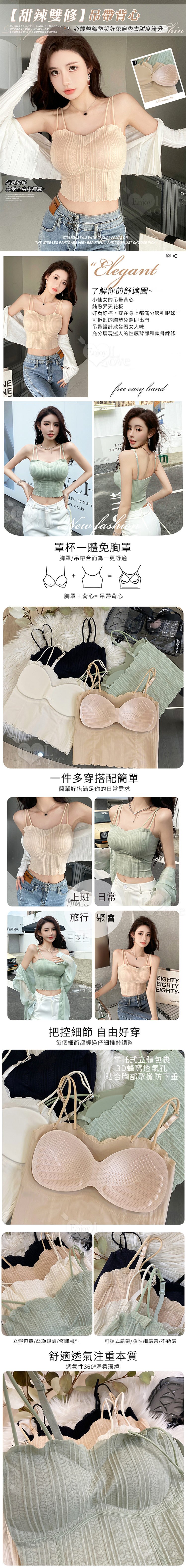 細肩立體包覆美胸舒適吊帶背心 (黑色/白色/綠色)