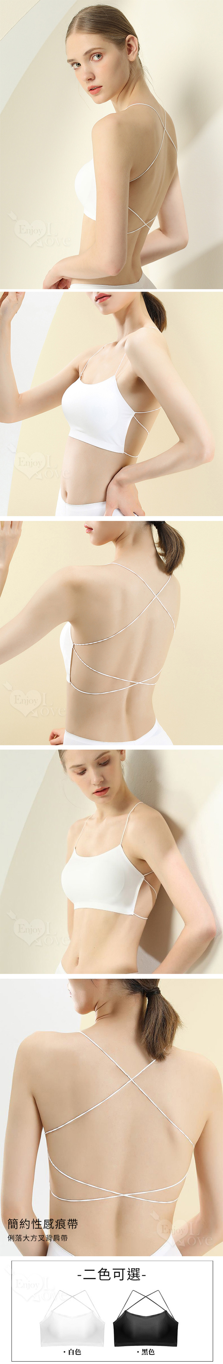 無痕彈力交叉美背細肩小可愛背心 (白色/黑色) 可拆式胸墊