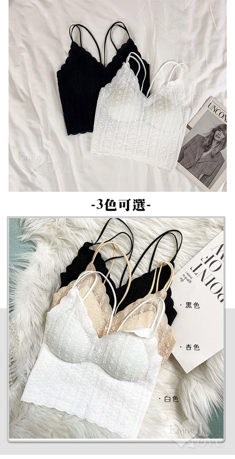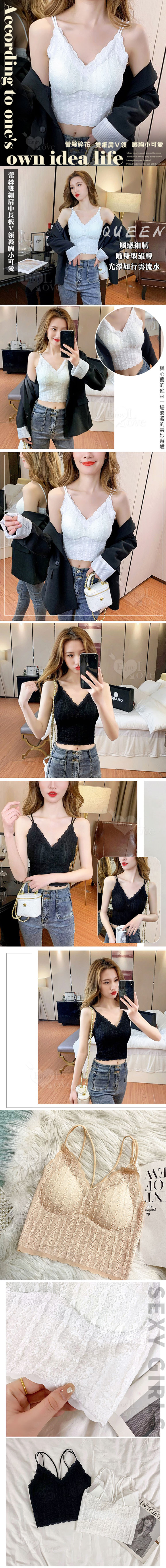 蕾絲碎花雙細肩V領小可愛背心 (白色/黑色/杏色) 可拆式胸墊