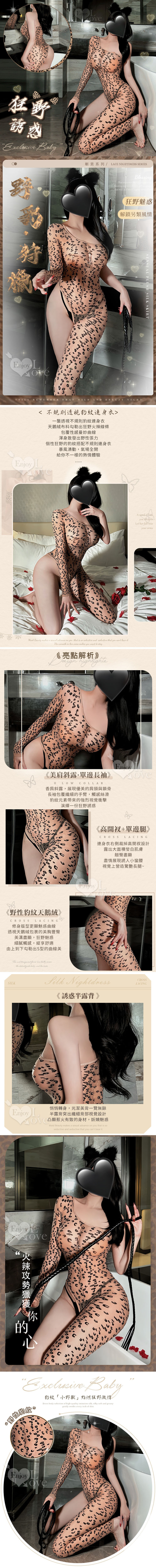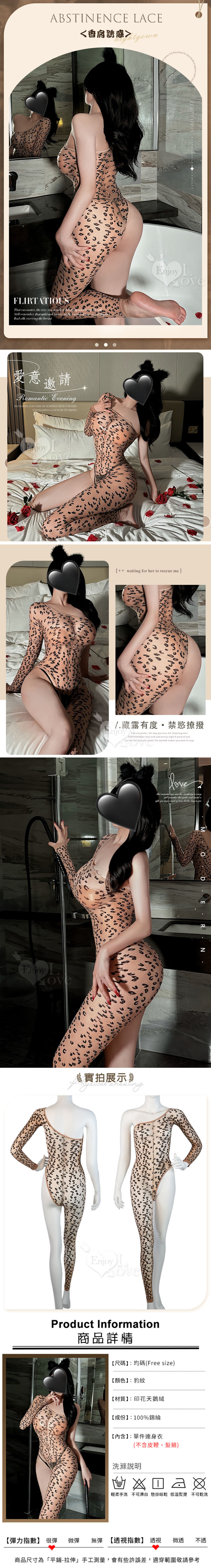 貓裝 斜肩不規則野性豹紋絲襪連身衣 膚