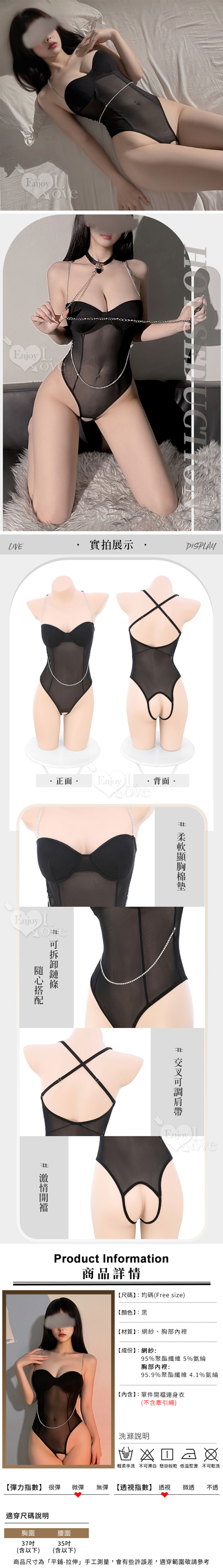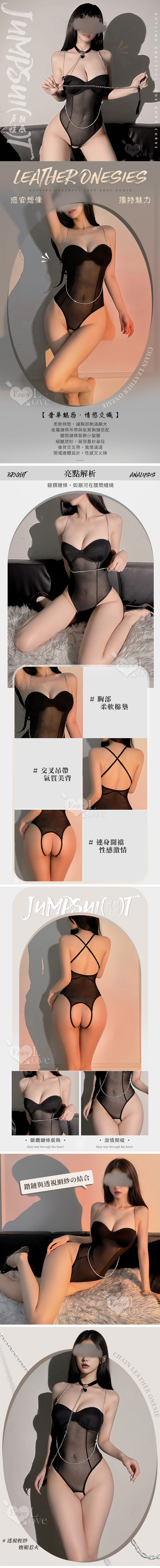 銀鑽鍊條交叉美背開襠連身衣(胸墊) 黑