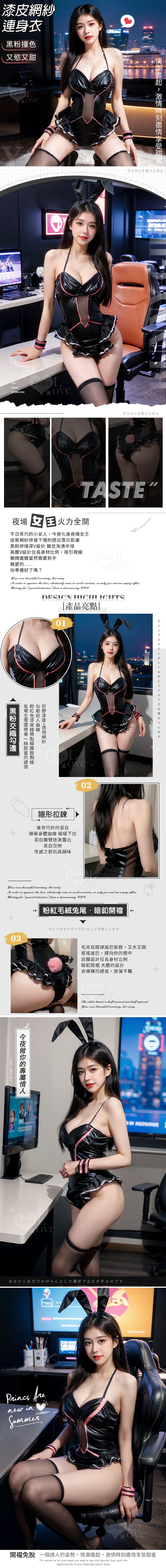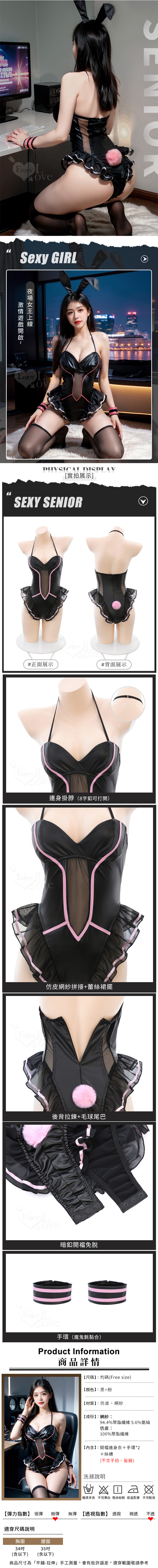 三件式掛脖露背花邊裙襬開襠漆皮連身衣 黑