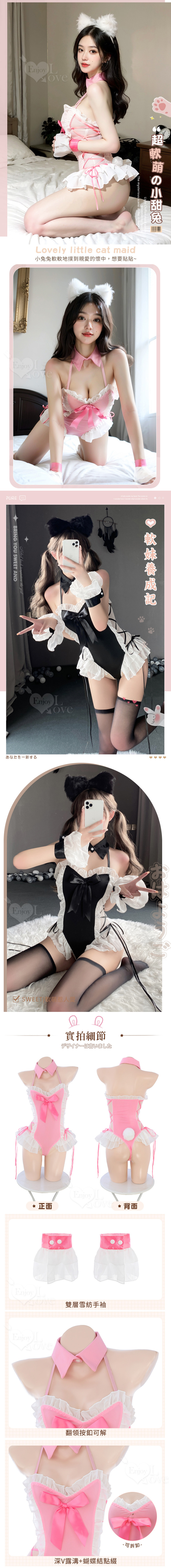 兔女郎 六件式雪紡花邊側綁帶雙層裙襬連身衣套裝