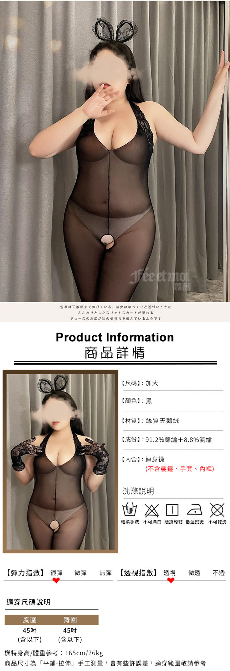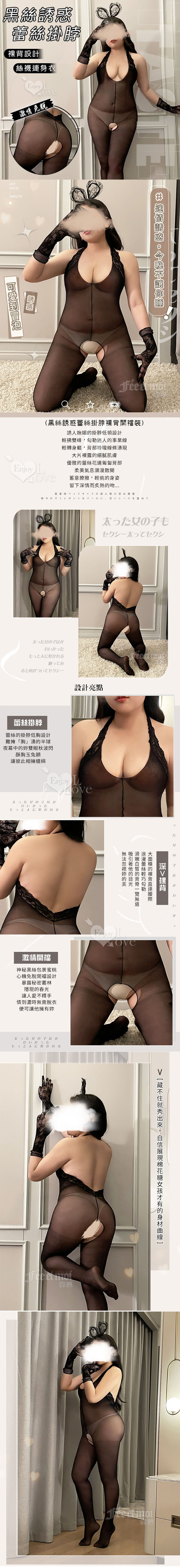 黑絲誘惑蕾絲掛脖開襠絲襪連身衣 大尺碼貓裝
