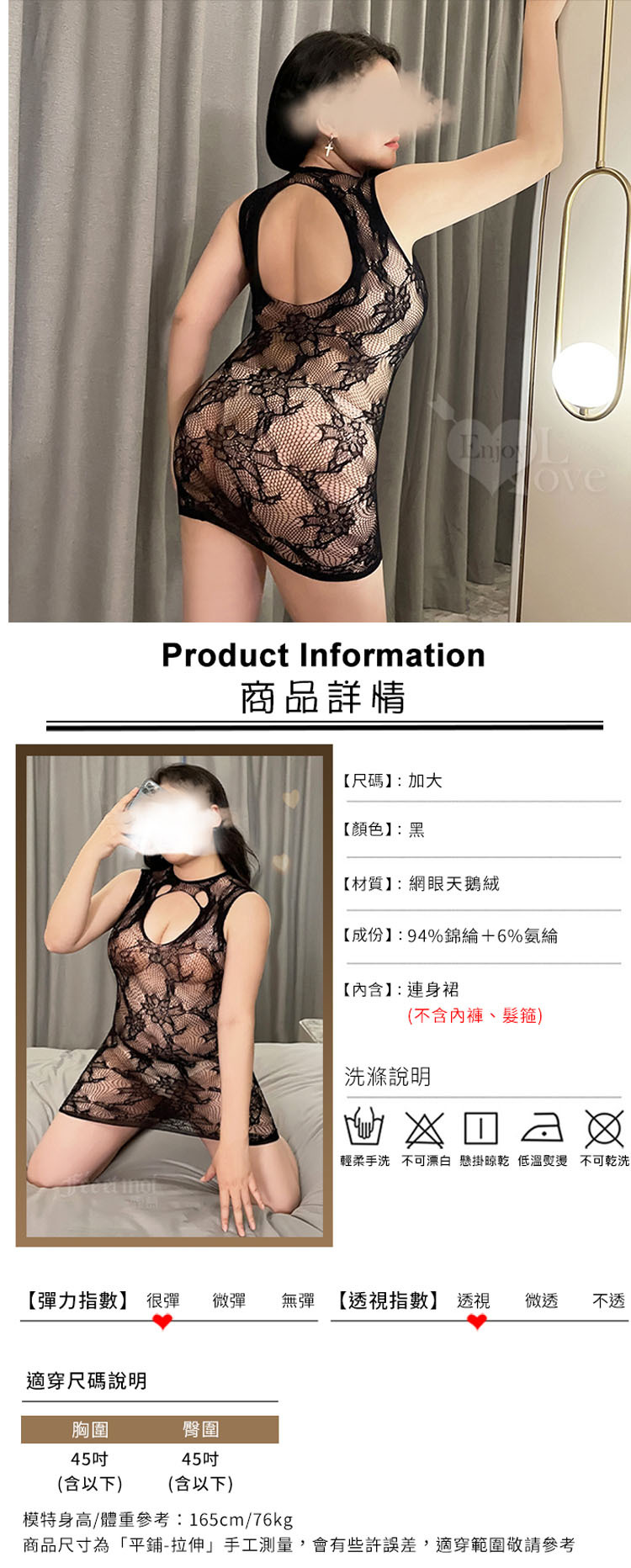裸肌花卉蕾絲露背連身網裙 大尺碼貓裝