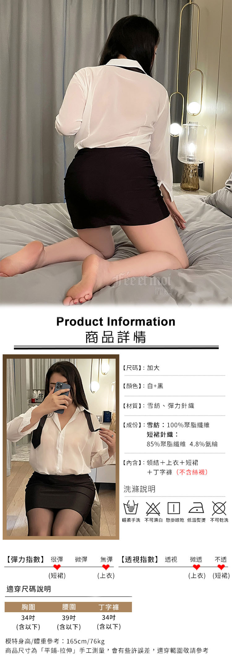 百變秘書 男友風襯衫領帶秘書服四件式套裝 大尺碼服飾