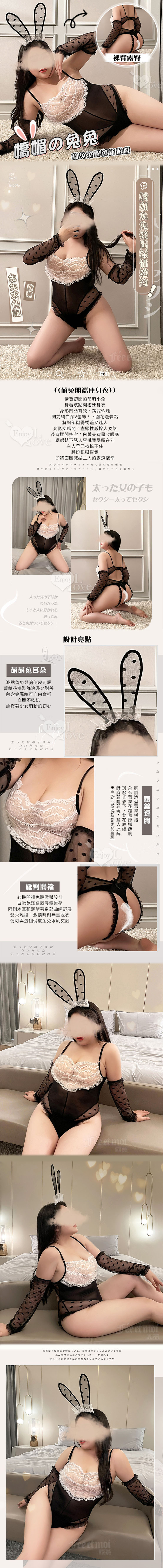 蕾絲點點 露臀開襠連身衣兔女郎三件式套裝 大尺碼服飾