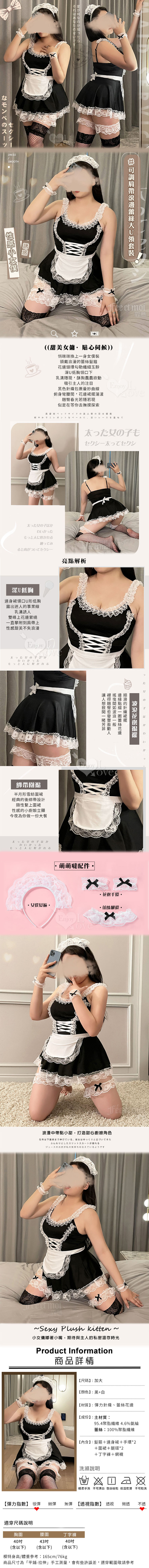 甜美伺候 花邊蕾絲肩帶U領女僕七件式套裝 大尺碼服飾