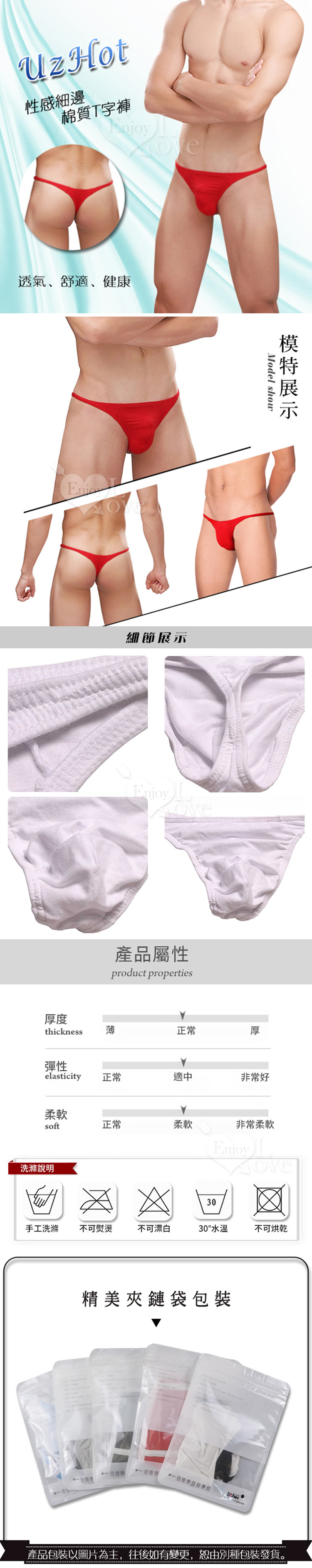 UzHot 細邊彈性男丁字褲 (紅色/藍色)