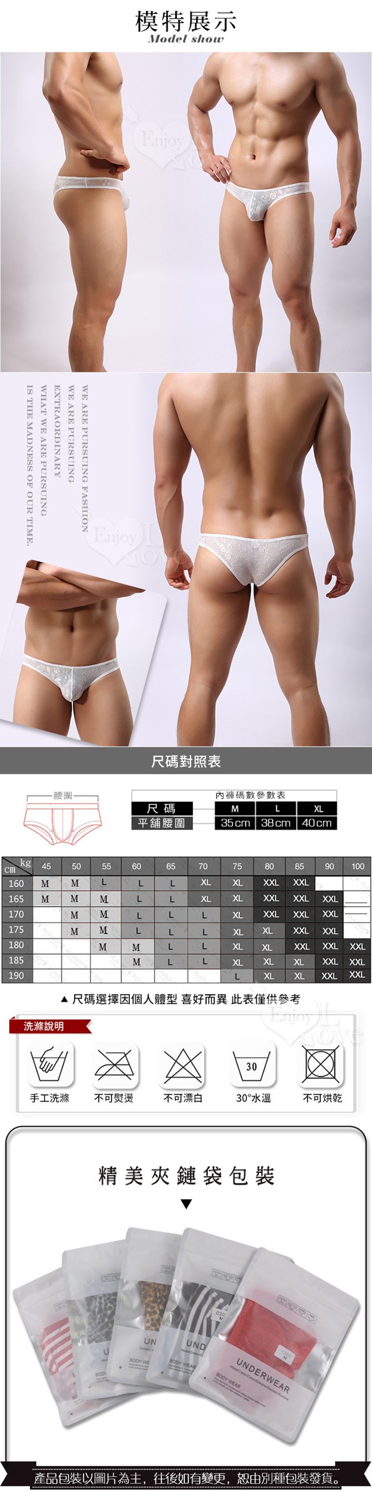 壞壞騷男 無痕蕾絲男三角褲 白色
