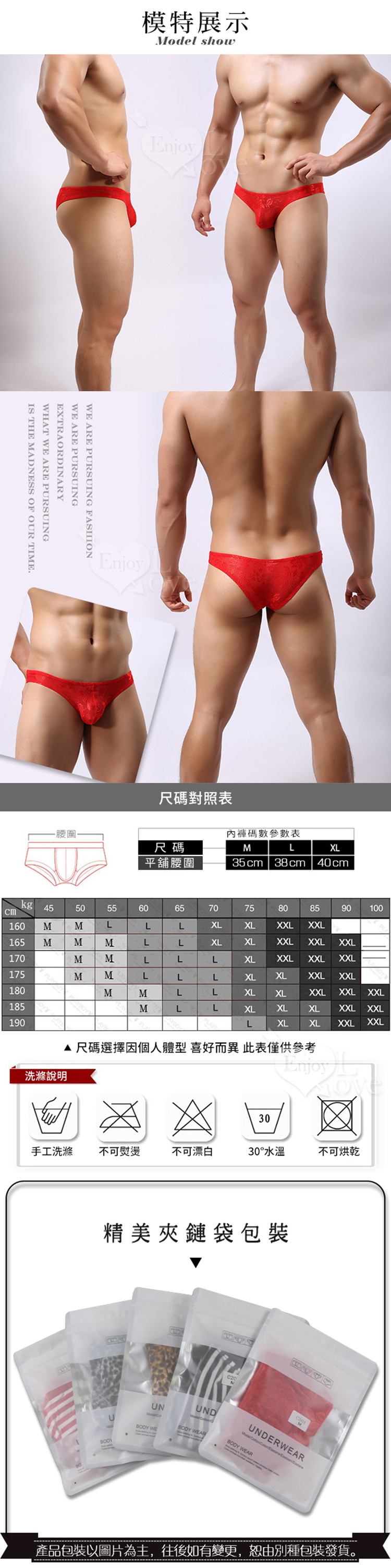 壞壞騷男 無痕蕾絲男三角褲 紅色