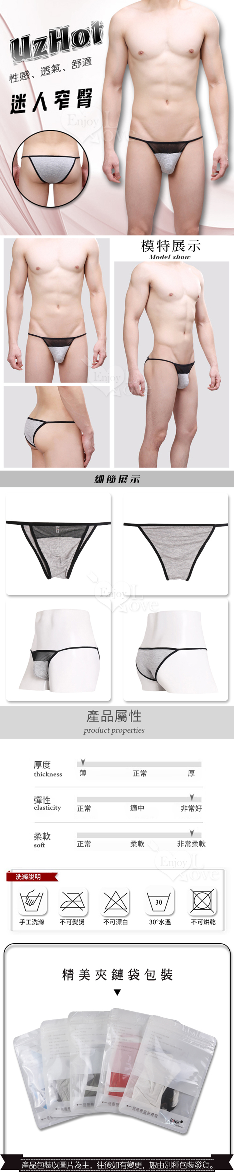 UzHot 迷人窄臀細帶網紗男三角褲 灰