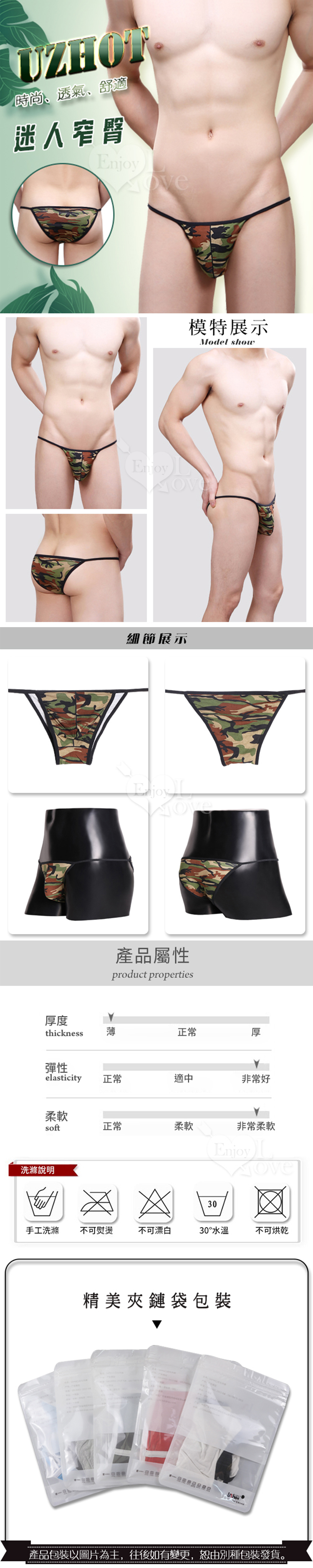 UzHot 迷人窄臀細帶網紗男三角褲 綠迷彩