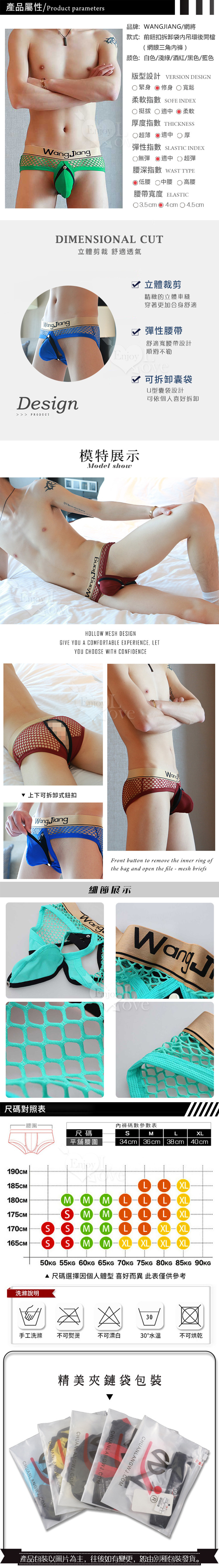 網將WJ 鈕扣吊環後開檔網眼男三角褲 酒紅