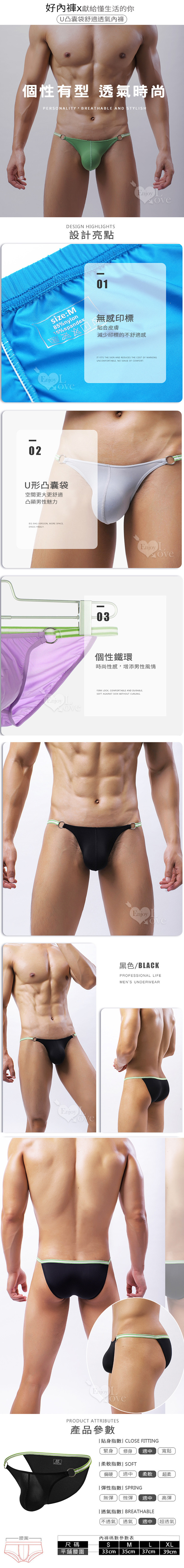 雙環細邊U凸囊袋透氣男三角褲 黑