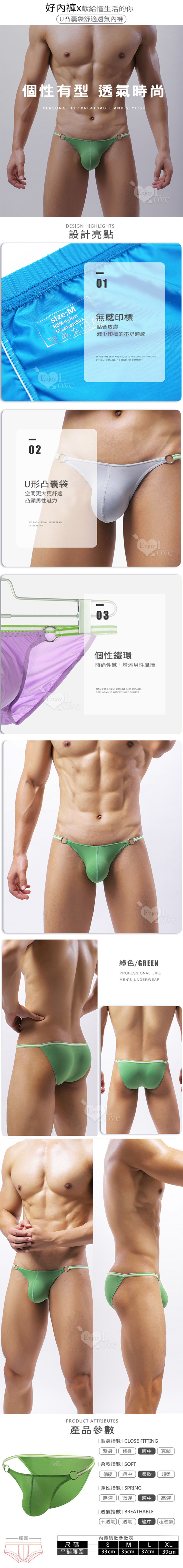 雙環細邊U凸囊袋透氣男三角褲 綠