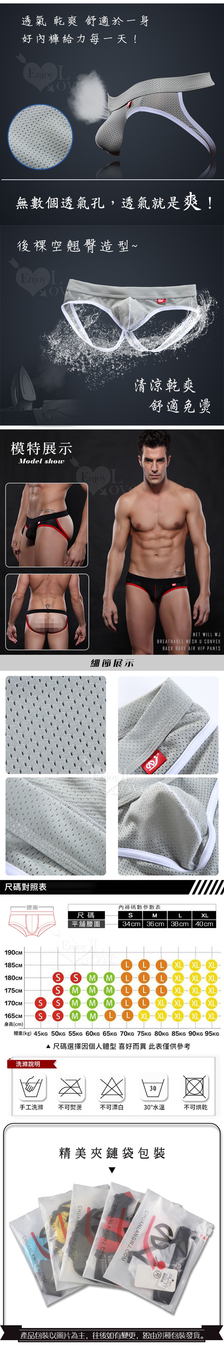 網將WJ 透氣網U凸後裸空男褲 黑
