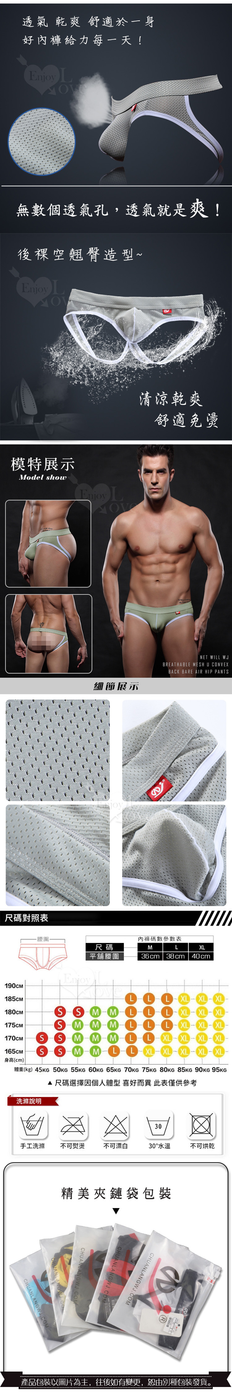 網將WJ 透氣網U凸後裸空男褲 草綠