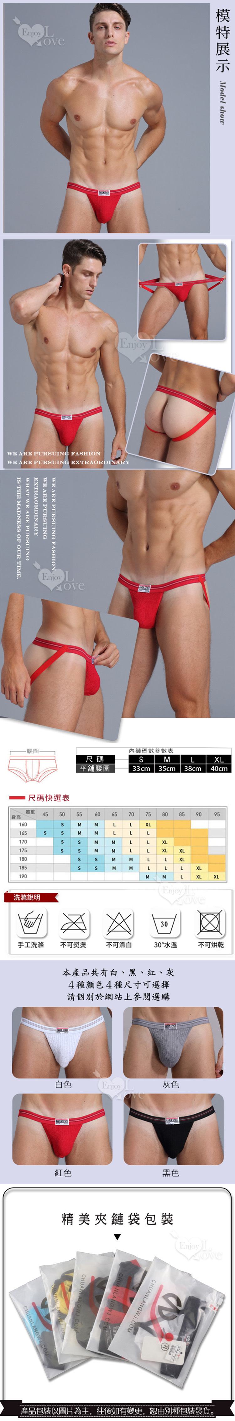 完美包覆裸屁屁開襠男褲 紅