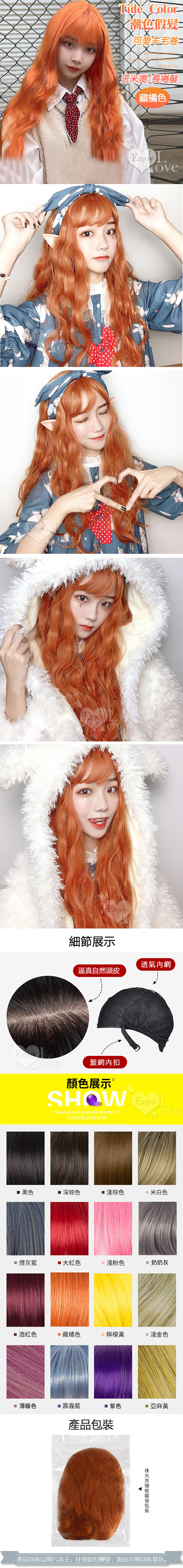 Tide Color潮色假髮 玉米燙可愛羊毛卷長捲髮 藏橘色