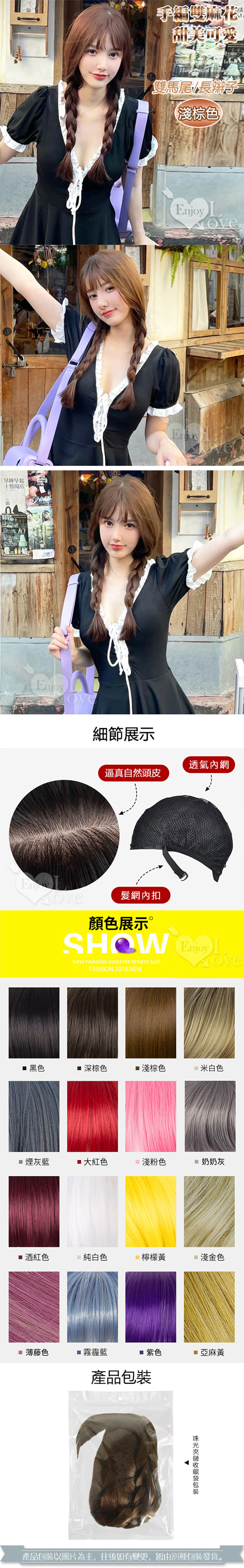 ■ 頭髮類型:甜美可愛雙馬尾長辮子 手編雙麻花全頭套化纖假髮