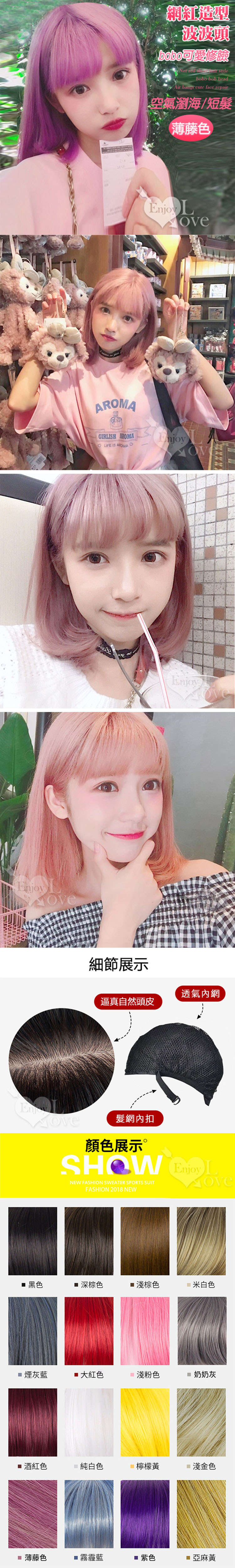 網紅造型 空氣瀏海bobo頭短假髮 薄藤色