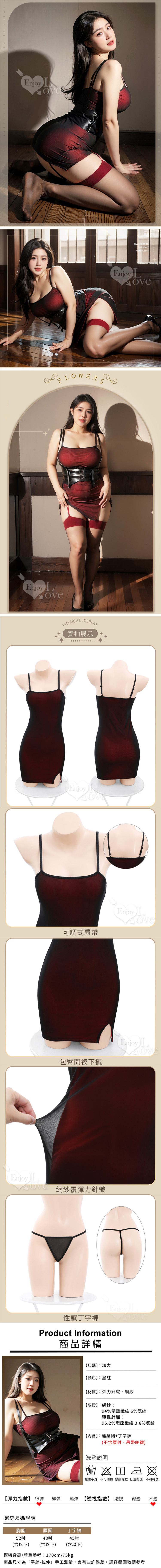 親膚絲滑吊帶開衩連身裙兩件組 大尺碼服飾