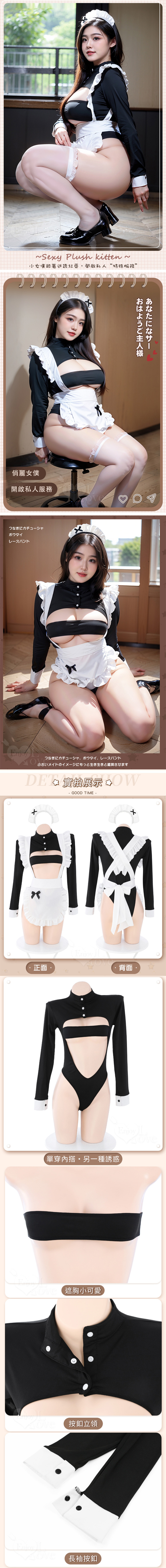 一字遮胸木耳花邊可開襠連身衣四件式套裝 大尺碼服飾