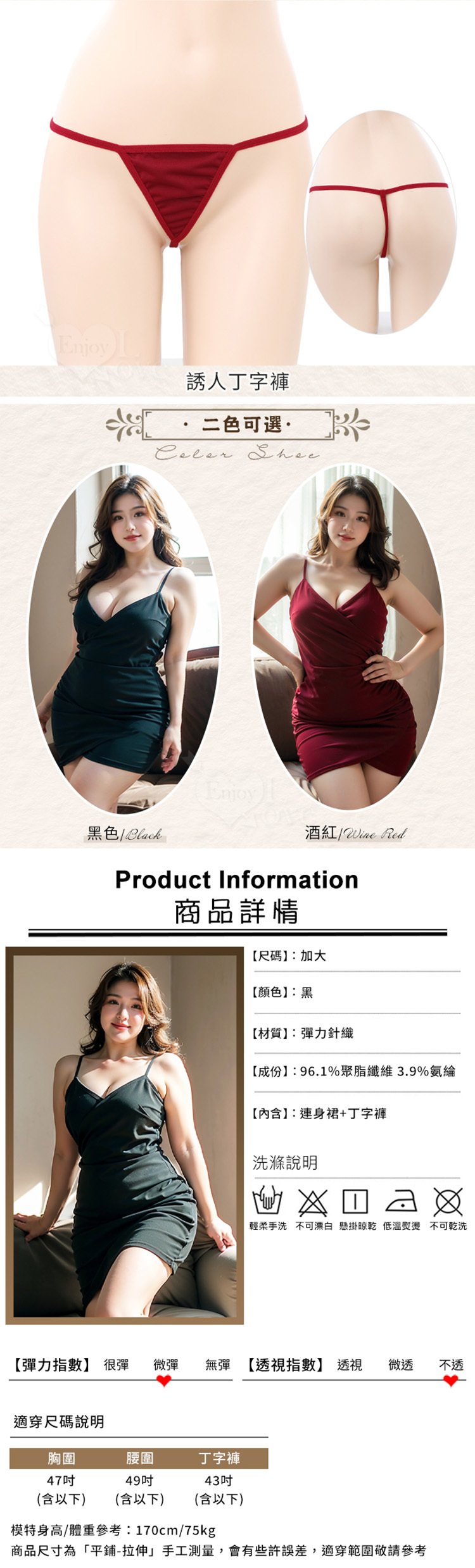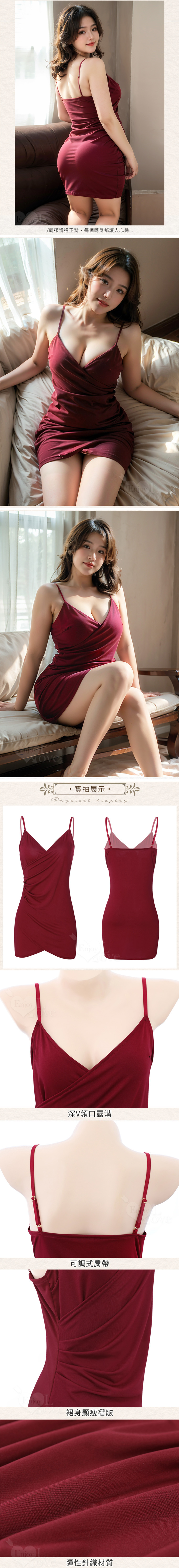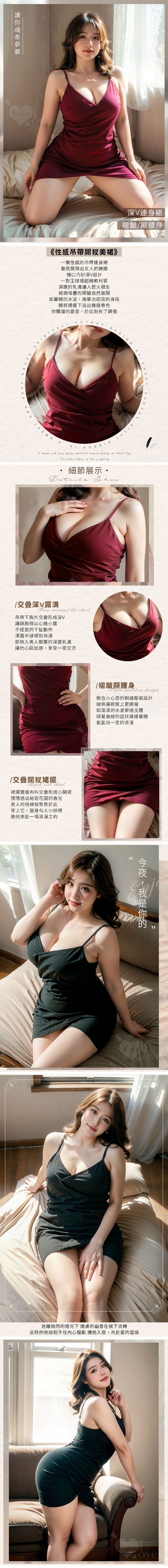 吊帶V型美胸開衩裙兩件組 大尺碼服飾