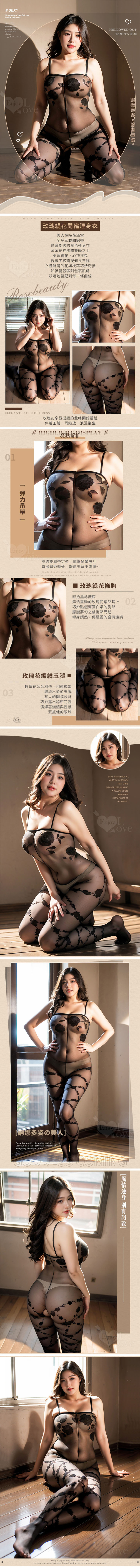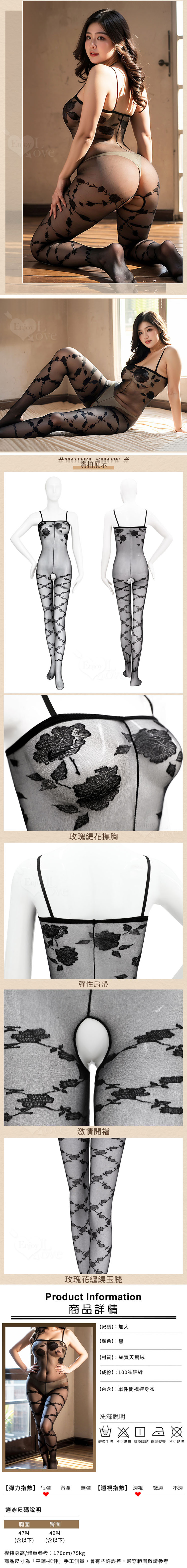 黑玫瑰刺繡纏繞玉腿絲襪開襠連身衣 大尺碼服飾