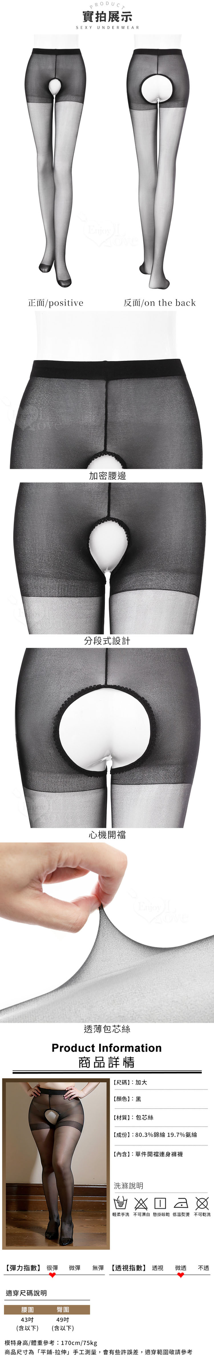 透膚彈力腰邊激情開襠連身褲襪 大尺碼服飾