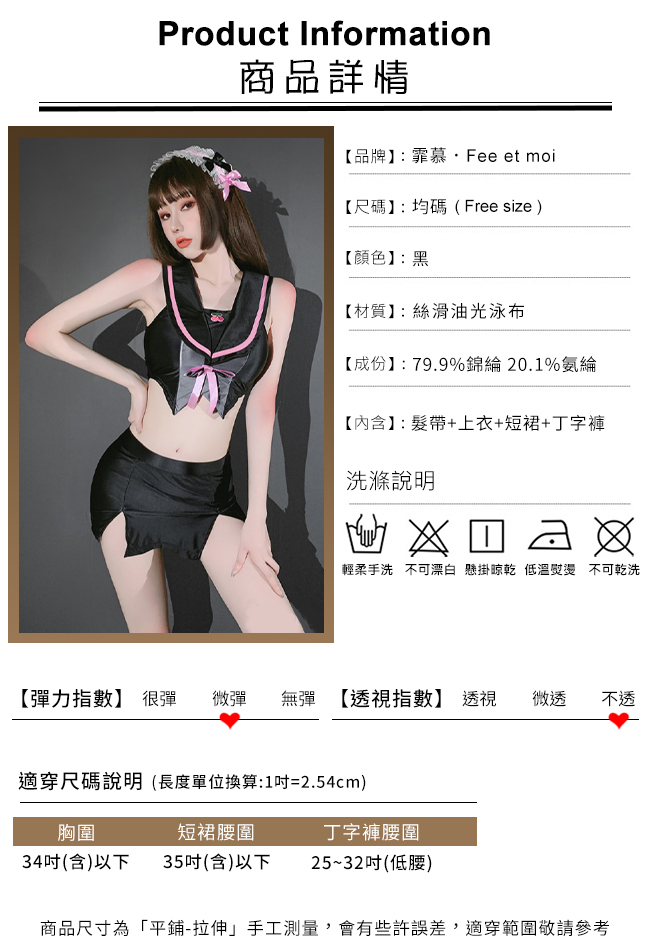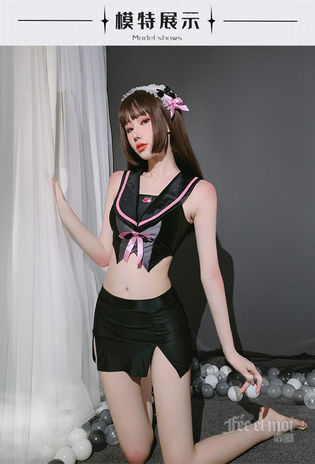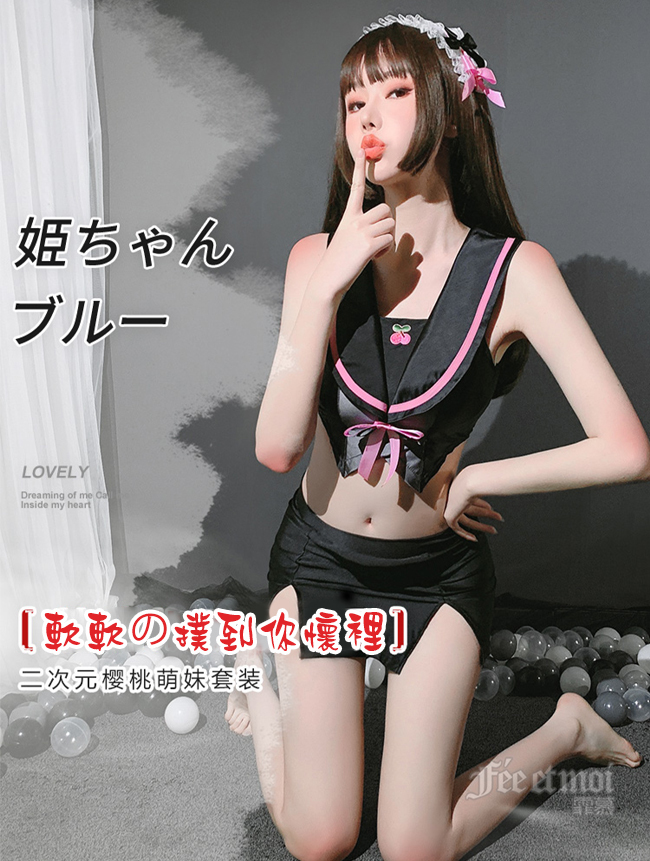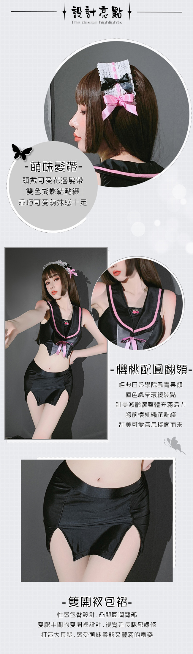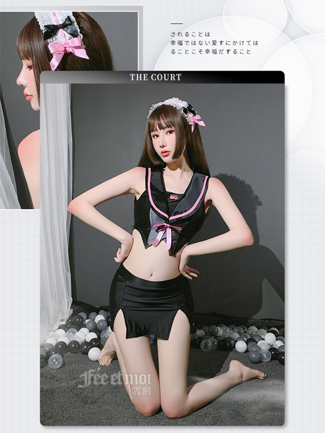 花邊髮帶雙開衩包臀短裙動漫風四件組