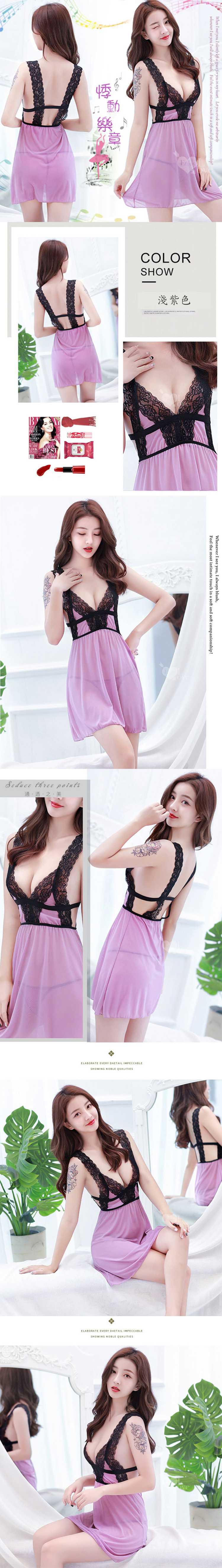 深V蕾絲花邊寬版肩帶柔紗睡衣