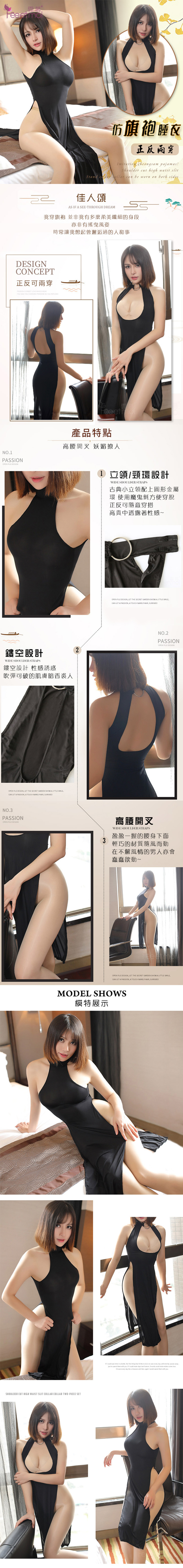 削肩高腰開衩立領頸環雙面穿法兩件組仿旗袍睡衣