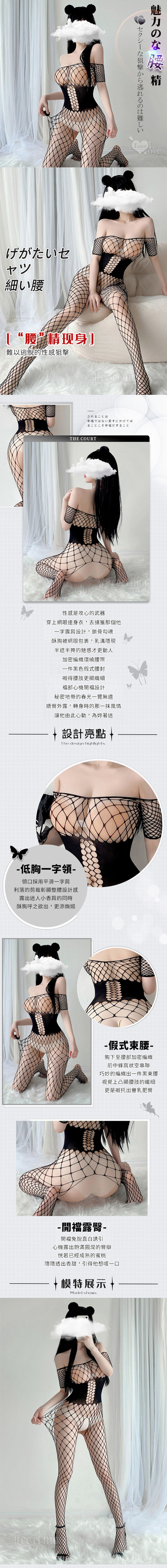極性貓裝低胸一字領束縛網格開襠露臀連身衣