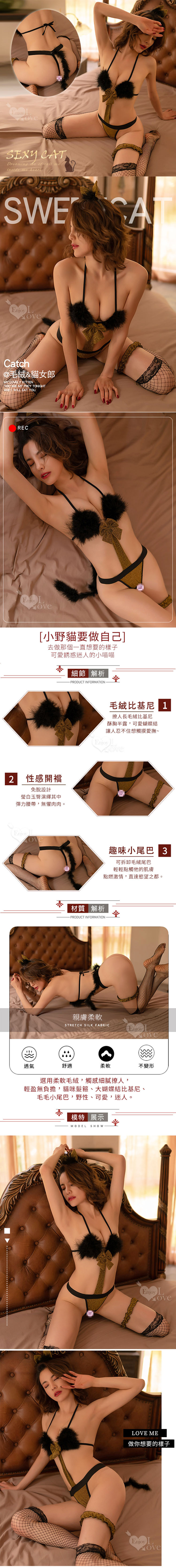 貓咪角色扮演綁脖毛絨金蔥開襠連身衣四件式套裝