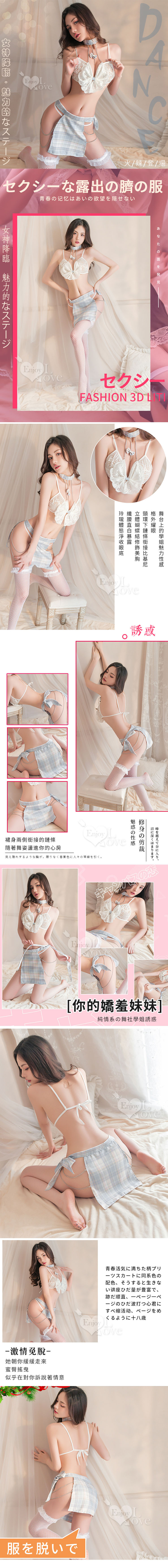 格紋頸環接蝴蝶結比基尼兩側鍊條小短裙五件式套裝