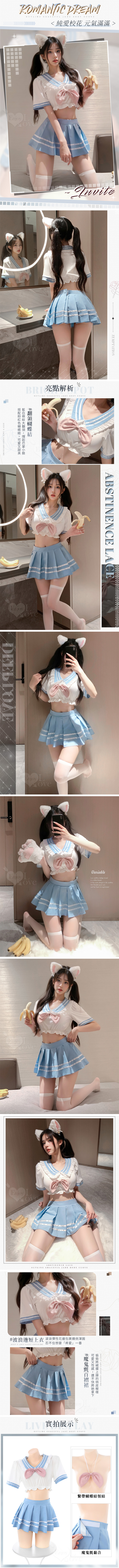 純愛校花 學生角色扮演翻領蝴蝶結百褶裙四件式套裝