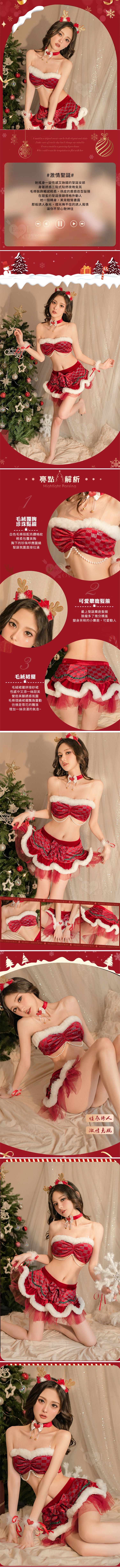 不眠聖誕 俏皮麋鹿髮箍毛絨拼接紗裙分體七件式套裝