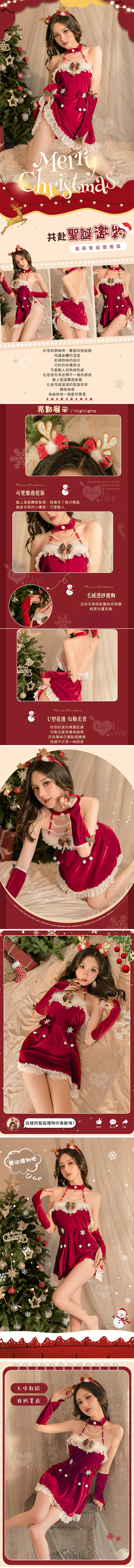 聖誕邀約 蕾絲荷葉邊蝴蝶結掛脖裙四件式套裝
