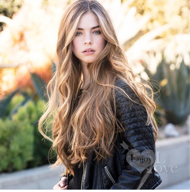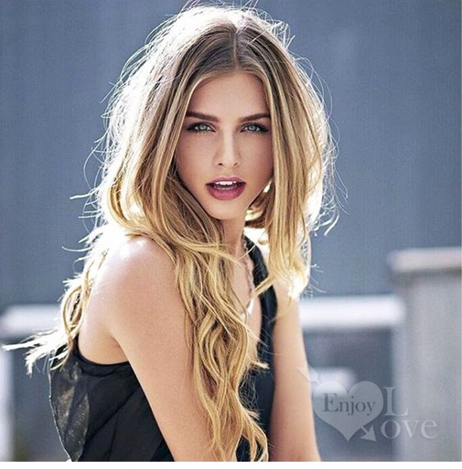 ■ 頭髮類型:外貿歐美漸變假髮 女士中分瀏海大長捲髮