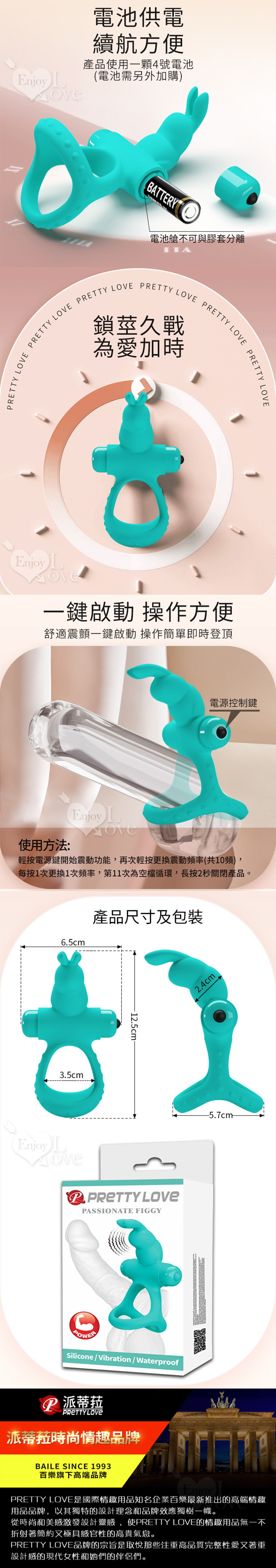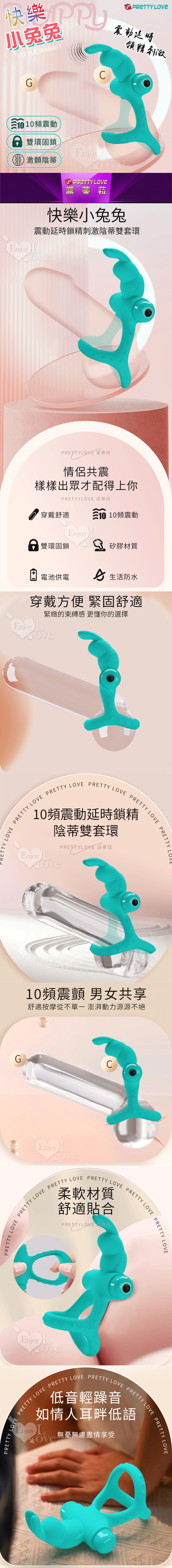 PRETTY LOVE 快樂小兔兔 雙環延時鎖精刺激陰蒂震動環 水藍